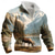Per uomo Lupo Nido d'ape Felpa Moda Quotidiano Da caccia Collo alla coreana Zip a un quarto All'aperto Abbigliamento casual alla moda Viaggio Campeggio Blu 1 Blu 3# Blu 2# Con zip Autunno Inverno