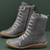 stivali alti fino al ginocchio in pelle scamosciata grigia da donna con lacci, stivaletti alti con tacco grosso in stile vittoriano retrò per la moda invernale, cosplay e streetwear