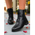 stivali da motociclista neri con borchie da donna e cinturini con fibbia, stivaletti in stile punk rock, calzature alla moda per outfit casual e street style