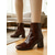 stivaletti da donna in pelle scamosciata color cammello con plateau, rifiniture in pelliccia sintetica, dettaglio con laccio e tacco spesso: stivali invernali caldi ed eleganti da indossare tutti i giorni e per le feste