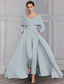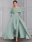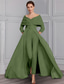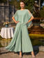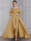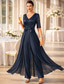 Tute Asimmetrico Abito da cerimonia per signora Mezza Manica Scollo a V Elegante Semplice Ospite di nozze Serata Formale Chiffon Tessuto Elasticizzato con Fiore Tinta unita