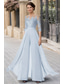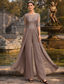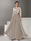 Tute Tubino Colonna Lunghezza al pavimento Abito da cerimonia per signora Manica 3/4 Scollo Illusione Elegante Formale Ospite di nozze Chiffon con Ricamo Tinta unita