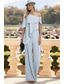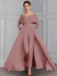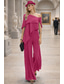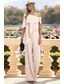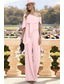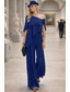 Due Pezzi Tuta Completo Pantalone Lunghezza alla caviglia Abito da cerimonia per signora Manica 3/4 Scollo Tondo Senza Spalle Elegante Festa Formale Ospite di nozze Tessuto Elasticizzato con Fascia