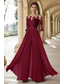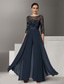 Tute Lunghezza al pavimento Abito da cerimonia per signora Manica 3/4 Scollo Illusione Elegante Formale Ospite di nozze Chiffon Elasticizzato con Pizzo Tinta unita