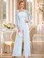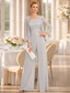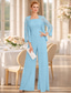 Tuta Completo Pantalone Tre Pezzi Lunghezza alla caviglia Abito da cerimonia per signora Manica 3/4 Scollo Tondo Elegante Brillare & Splendere Formale Ospite di nozze Ricevimento di matrimonio Con