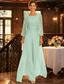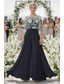 Due Pezzi Tuta Completo Pantalone Lunghezza al pavimento Abito da cerimonia per signora Mezza Manica Scollo a Barca Elegante Petite Ospite di nozze Chiesa Chiffon con Applicazioni