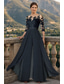 Tute Lunghezza al pavimento Abito da cerimonia per signora Manica Lunga Scollo profondo Elegante Formale Ospite di nozze Raso con Pizzo