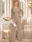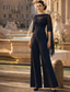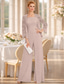 Tuta Completo Pantalone Lunghezza al pavimento Perline ricamate Abito Formale Abito da madre della sposa Abito da cerimonia per signora Mezza Manica Scollo Illusione Elegante Vintage Ospite di nozze