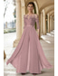 Tute Lunghezza al pavimento Abito da cerimonia per signora Manica Corta Senza Spalle Elegante Formale Ospite di nozze Ricevimento di matrimonio Chiffon con Volant