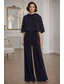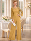 Tuta Completo Pantalone Lunghezza al pavimento Abito Formale Abito da cerimonia per signora Manica 3/4 Scollo a Barca Elegante Vintage Formale Ospite di nozze Chiesa Chiffon con Ricamo