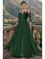 Tute Lunghezza al pavimento Abito da cerimonia per signora Manica Lunga Scollo a V Elegante Brillare & Splendere Formale Ospite di nozze Ricevimento di matrimonio Chiffon con Fascia / Nastro