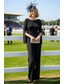 Tuta Completo Pantalone Lunghezza al pavimento Abito Derby Abito da cerimonia per signora Manica Lunga Senza Spalle Elegante Formale Derby del Kentucky Tessuto Elasticizzato con Perle