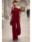 Tute Lunghezza alla caviglia Abito da cerimonia per signora Manica Lunga Scollo a V Elegante Formale Ospite di nozze Ricevimento di matrimonio Tessuto Elasticizzato con Volant