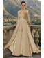Tute Lunghezza al pavimento Abito da cerimonia per signora Manica 3/4 Collo gioiello Elegante Festa Ospite di nozze Ricevimento di matrimonio Raso con Applicazioni Tinta unita