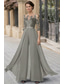 Tute Lunghezza al pavimento Abito da cerimonia per signora Manica Corta Scollo a V Senza Spalle Elegante Minimalista Formale Ospite di nozze Ricevimento di matrimonio Chiffon con Fascia / Nastro