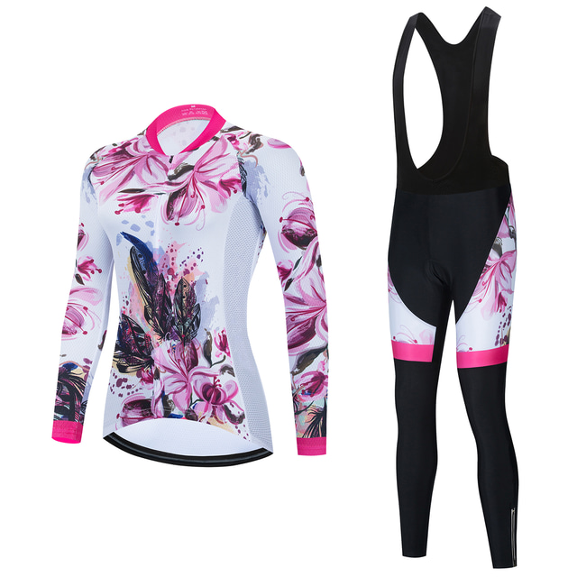 Per donna Maglia da ciclismo con salopette Manica Lunga Mountain Bike MTB Ciclismo su strada Estate Primavera Rosso / Bianco Nero / Rosso Motivo Floreale Bicicletta Cuscinetto 3D Asciugatura Rapida