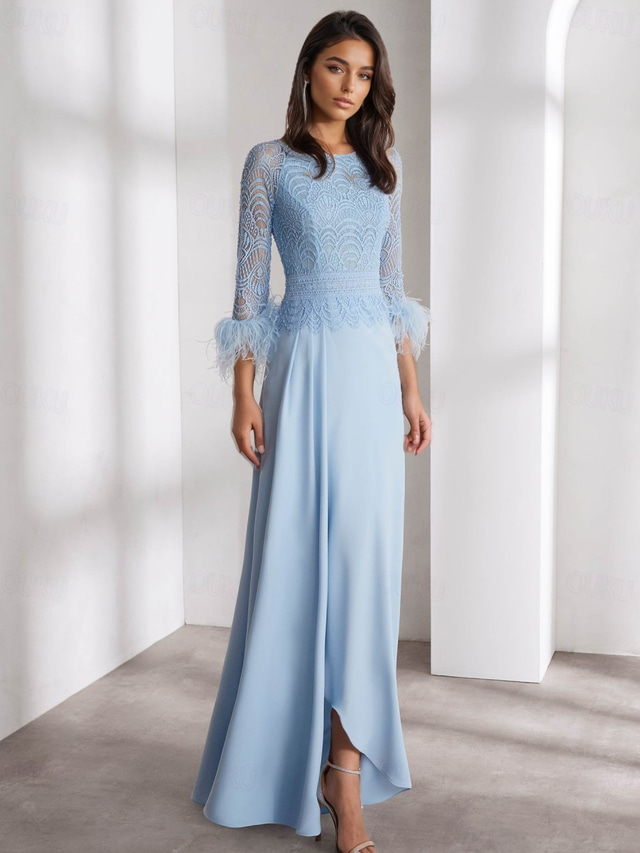 Occasione:Formale,Matrimonio,Stile:Vintage,Elegante,Taglio dell'abito:Linea ad A,Orlo / strascico:Lunghezza al pavimento,Scollatura:Girocollo,Tessuto:Chiffon,Pizzo,Dettagli del retro:Cerniera,Lunghezza della manica:Manica Lunga,Abbellimenti:Piuma,Volant,Consigli:Solo lavanderia professionale,I colori possono variare leggermente a causa delle diverse impostazioni del monitor,