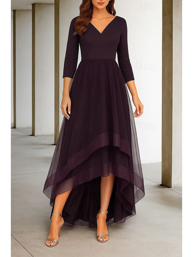 Stile:Alto Basso,Taglio dell'abito:Linea ad A,Orlo / strascico:Lunghezza Tè,Scollatura:Scollo a V,Tessuto:Tessuto Elasticizzato,Dettagli del retro:Cerniera,Lunghezza della manica:Manica 3/4,Tipo di vita:Naturale,Foderato:Sì,Abbellimenti:Arricciato,LUOGHI PER MATROMINIO:Bridal Shower,Consigli:I colori possono variare leggermente a causa delle diverse impostazioni del monitor,Solo lavanderia professionale,Componenti in tessuto:Poliestere,
