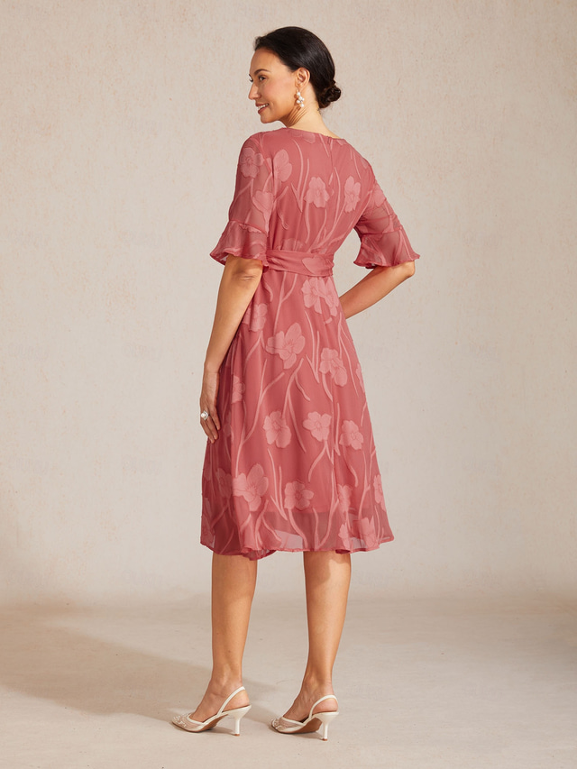 Per donna Abito Midi Vestito in Chiffon Elegante Quotidiano Ospite di nozze Data Vestibilità regolare Floreale Mezza Manica Scollo a V Corallo Rosso