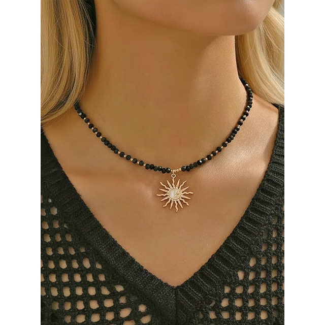 Collana con ciondolo a forma di sole in stile bohémien da donna: materiale in lega e perline, diverse opzioni di colore, perfetta per un abbigliamento casual e per lo stile delle vacanze al mare