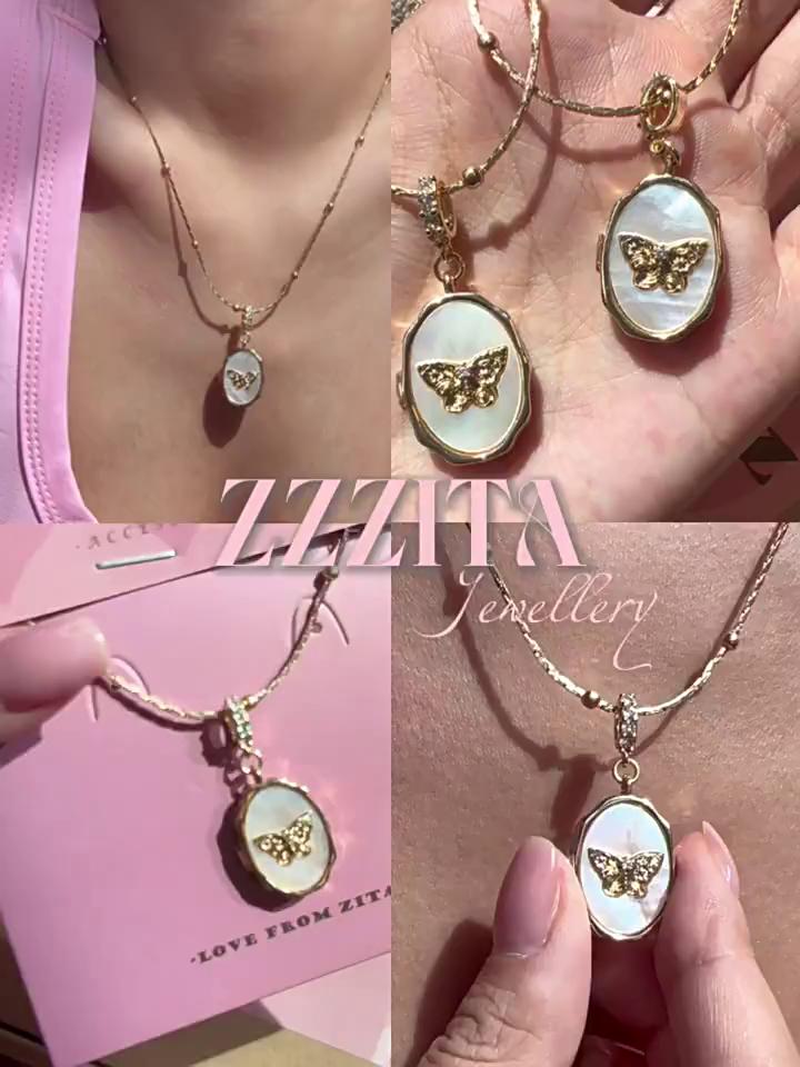 Collana con ciondolo a farfalla in oro da donna - ciondolo ovale in stile vintage con perle e scomparto nascosto per foto, elegante regalo per anniversario, compleanno o laurea