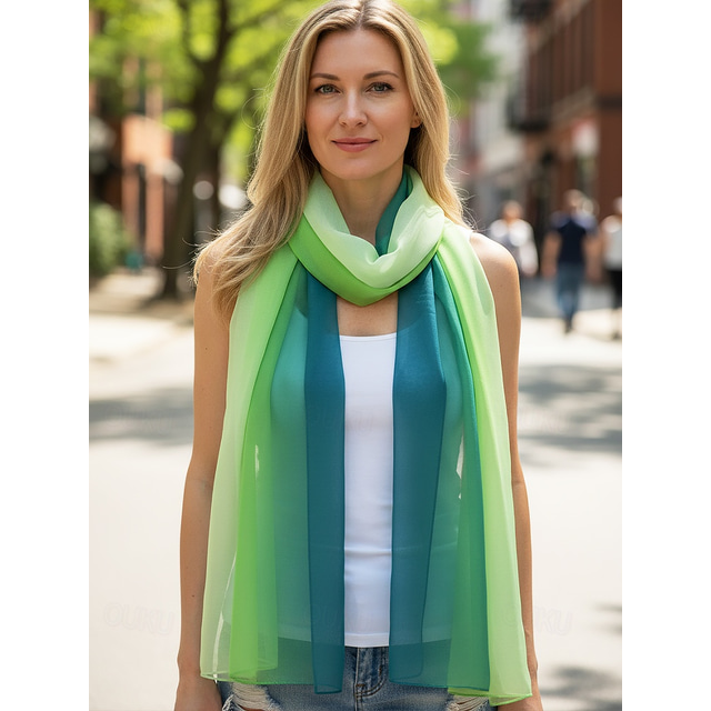 Sciarpa/stola da donna in chiffon sfumato stile boho, multicolore, leggera, in poliestere, ideale per abbigliamento casual, viaggi, vacanze, spiaggia e resort.