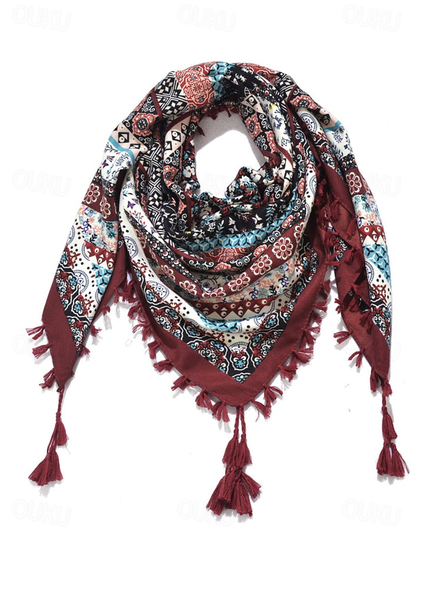 sciarpa quadrata boho da donna con nappe – scialle leggero in misto cotone con stampa etnica per outfit casual, viaggi e festival