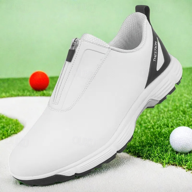 scarpe da golf bianche da uomo con chiusura a cerniera, tomaia traspirante e suola ammortizzata per comfort e prestazioni sul campo