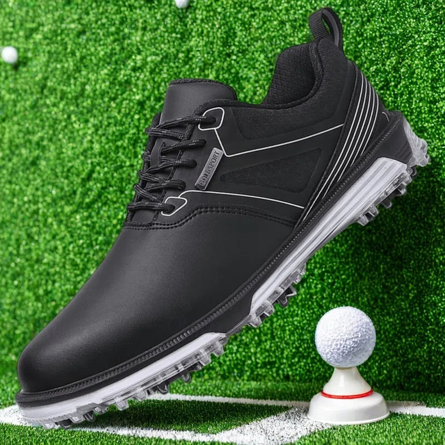 scarpe da golf da uomo bianche e nere con suola chiodata, tomaia traspirante e ammortizzazione di supporto per un comfort e prestazioni ottimali sul campo