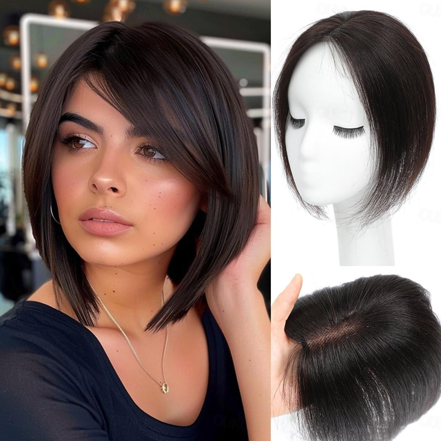 topper per capelli 9.8" topper per capelli umani per donne topper per capelli color castano scuro per capelli diradati topper per capelli umani 100% veri per donne