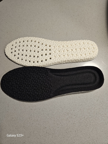 At a $1.49 price, I ordered 2 of these 7.5 size thick memory form insoles in black for my black tennis shoes. Just as shown by the photos, they are flexible enough to fold in half. I have ordered multiple colors to have on hand for replacements. Name brand thick sports insoles sell for $12 to $26 in my local retail stores. At a $1.49 price, I ordered 2 of these 7.5 size thick memory form insoles in black for my black tennis shoes. Just as shown by the photos, they are flexible enough to fold in half. I have ordered multiple colors to have on hand for replacements. Name brand thick sports insoles sell for $12 to $26 in my local retail stores.