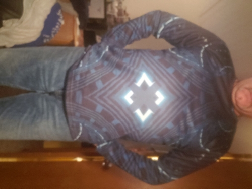 I find the unique print on this shirt very cool. While Im not much of a long sleeve shirt fan I realize that with the long sleeves it gives the shirt a complete 3 dimensional effect. I find the unique print on this shirt very cool. While Im not much of a long sleeve shirt fan I realize that with the long sleeves it gives the shirt a complete 3 dimensional effect.