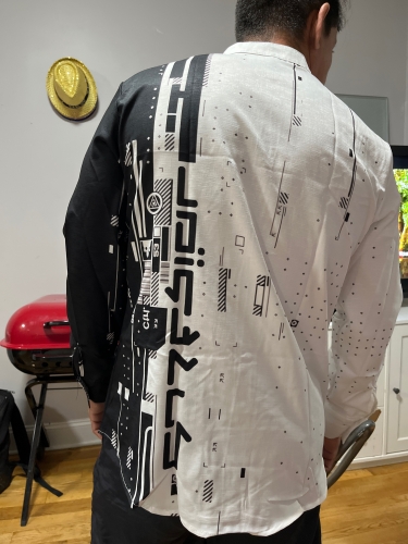 camicia bella ..tessuto ottimo...la stampa sulla camicia la rende elegante ma anche divertente... sono molto soddisfatto camicia bella ..tessuto ottimo...la stampa sulla camicia la rende elegante ma anche divertente... sono molto soddisfatto