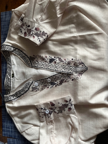 shirt has long sleeves, cuff is printed on both sides. shirt has long sleeves, cuff is printed on both sides.