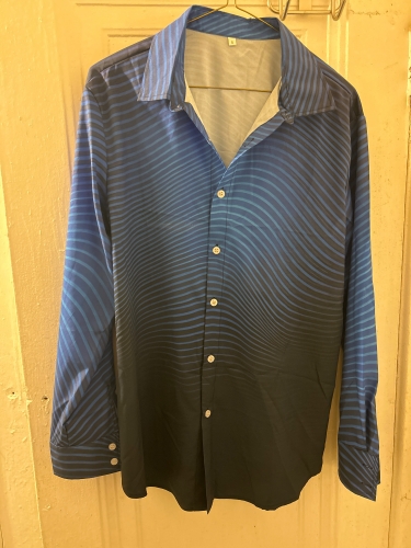 The fit of this shirt was excellent. The material is very light fabric and almost like silk. It is a beautiful colour of blue. The fit of this shirt was excellent. The material is very light fabric and almost like silk. It is a beautiful colour of blue.