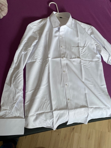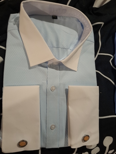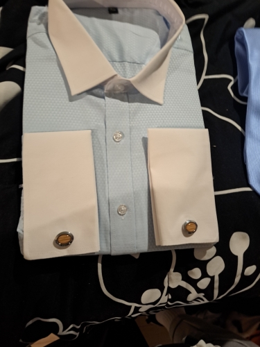 Feels better than almost all of my high quality name brand shirts! Seems like it has a very high thread and the detail is great. It has a horizontal twill pattern which is hard to see from the product photos. Maybe you can tell from my photos. The cufflinks are pretty heavy duty and seem like they will last. The fit was perfect, it’s a neutral fit not too slim not too relaxed. I’m 6’0 183cm 165lbs 75kg with a fairly muscular build and the 38 fit perfectly! Feels better than almost all of my high quality name brand shirts! Seems like it has a very high thread and the detail is great. It has a horizontal twill pattern which is hard to see from the product photos. Maybe you can tell from my photos. The cufflinks are pretty heavy duty and seem like they will last. The fit was perfect, it’s a neutral fit not too slim not too relaxed. I’m 6’0 183cm 165lbs 75kg with a fairly muscular build and the 38 fit perfectly!