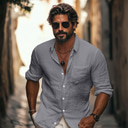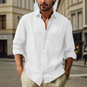 Per uomo Camicia in cotone e lino Semplice Vacanza Nero Bianco Rosa Azzurro cielo Manica Lunga Collo ripiegato Abbigliamento |
