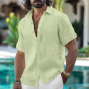 Per uomo Camicia Camicia di lino Camicia Estiva Camicia button-down Camicia casual Camicia da Spiaggia Tinta unica Vacanza Quotidiano Nero Bianco Rosa Blu Manica Corta Colletto Estate Abbigliamento |