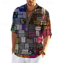Per uomo Etnico Camicia Camicia di lino Manica Lunga Moda Streetwear Designer All'aperto Quotidiano Uscire Primavera & Estate Collo alla coreana Stampato Blu Nero + Nero Giallo Verde chiaro Rosa |