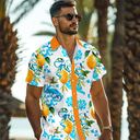 Per uomo Stampa Floreale Fiore Camicia Camicia con Bottoni Manica Corta Moda Casual Vacanza Ferie Abbigliamento mare Estate Primavera Collo ripiegato camicie con colletto Blu |