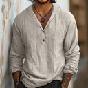 Per uomo Floreale Camicia Camicia di lino Camicia Aloha Manica Lunga Casual Abbigliamento quotidiano Uscire Weekend Primavera Colletto Mao Stampato Bottonato Blu Viola Verde |