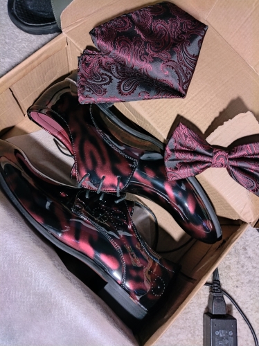 Shoes match perfectly with my bowtie and pocket square. Shoes fit like a glove, cant wait for the suit to match to come in to put them together. Shoes match perfectly with my bowtie and pocket square. Shoes fit like a glove, cant wait for the suit to match to come in to put them together.