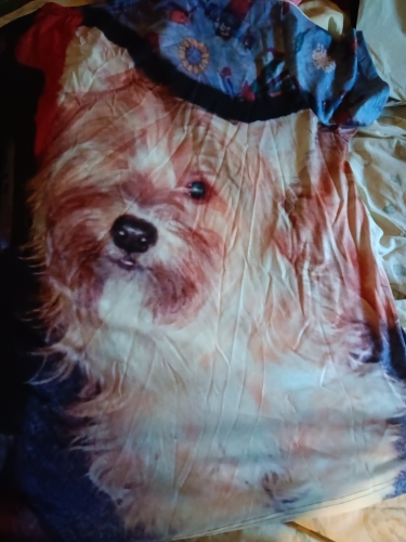 This shirt with my dogs picture on it, and another picture on the back, is just beautiful!! He crossed the Rainbow Bridge and I miss him so much. Shirt/photos are a bit wrinkled fron shipping. This shirt with my dogs picture on it, and another picture on the back, is just beautiful!! He crossed the Rainbow Bridge and I miss him so much. Shirt/photos are a bit wrinkled fron shipping.
