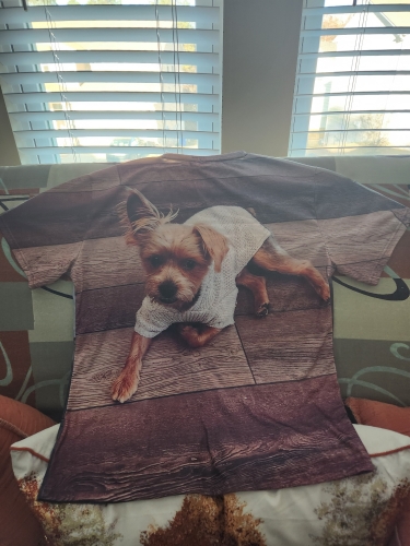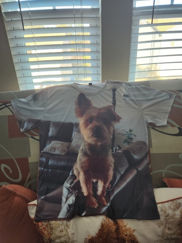The shirt looks amazing! I like that both the front and the back have a photo of Cooper. I cant wait to gift it to my Compadre. Im sure hes going to love it. The shirt looks amazing! I like that both the front and the back have a photo of Cooper. I cant wait to gift it to my Compadre. Im sure hes going to love it.