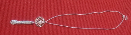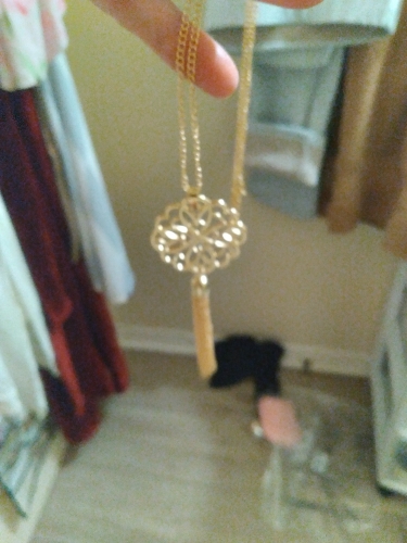 Długi naszyjnik z wisiorkiem zakończony frędzlami jest prosty ale piękny. Długi naszyjnik z wisiorkiem zakończony frędzlami jest prosty ale piękny.