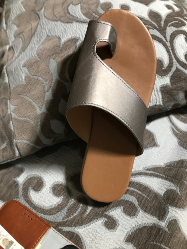 I bought these sandals to hold my big toe in place because it is Turing due to bunion. It does hold my toe in proper position but not sure how strong the material is and if it will stay like that for long. They look much diffferet than they do in the picture they are shiny. I bought these sandals to hold my big toe in place because it is Turing due to bunion. It does hold my toe in proper position but not sure how strong the material is and if it will stay like that for long. They look much diffferet than they do in the picture they are shiny.