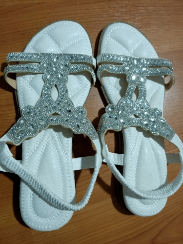 These blingy sandals are cute and pretty comfortable, though they do not, of course, have any cushioning for wearing all day. No problem, especially for the price. My only minor issue is that they run a bit wide. I wear a US 9.5 medium width shoe. These blingy sandals are cute and pretty comfortable, though they do not, of course, have any cushioning for wearing all day. No problem, especially for the price. My only minor issue is that they run a bit wide. I wear a US 9.5 medium width shoe.