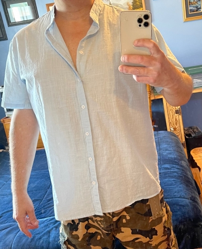 This shirt looks different on me than on the model no surprise but still looks and feels great. The size is true to the guidelines. It’s a beautiful shirt. This shirt looks different on me than on the model no surprise but still looks and feels great. The size is true to the guidelines. It’s a beautiful shirt.