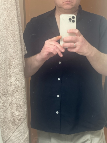 This is a beautiful shirt. I had purchased the light blue one in a 2XL and it was a bit small but I got the black one in 3XL and it fits great! This is a beautiful shirt. I had purchased the light blue one in a 2XL and it was a bit small but I got the black one in 3XL and it fits great!