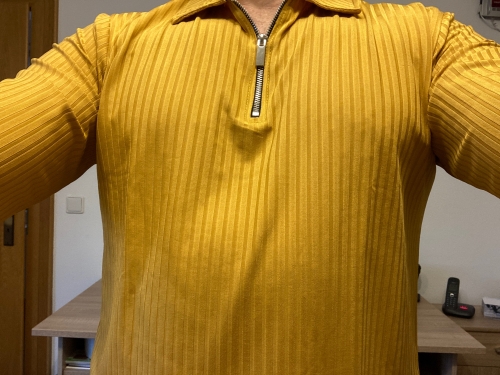 Schönes Shirt von guter Qualität, Figur betonend aber die Farbe ist mehr gelblich als orange. Schönes Shirt von guter Qualität, Figur betonend aber die Farbe ist mehr gelblich als orange.